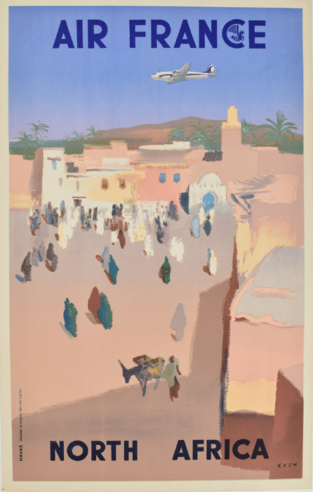 Air France North Africa Out of stock TITLE: Air France North Africa ARTIST: Even, Jean , 1910- 1986 YEAR: 1950 MEDIUM: Lithograph DIMENSIONS: 19 x 12 CONDITION: A Condition On Linen PRICE RANGE: Out of Stock