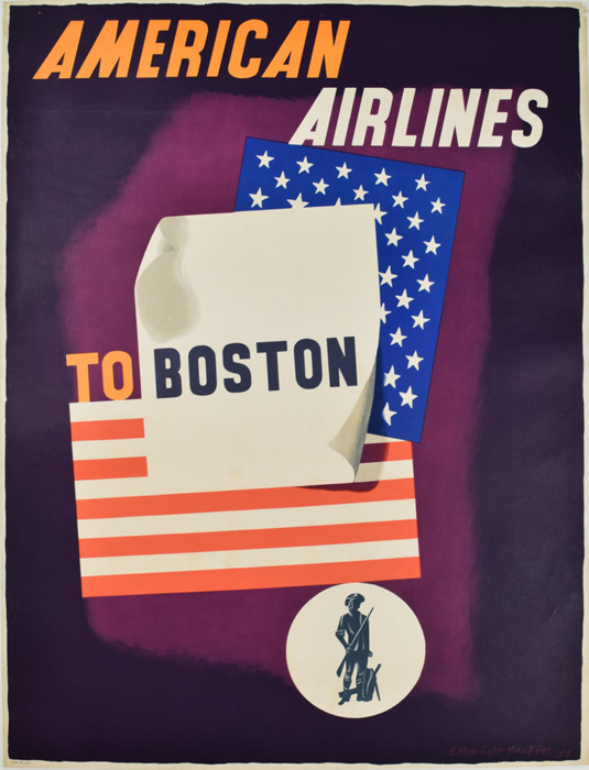 Boston American Airlines Out of stock TITLE: Boston American Airlines ARTIST: Kauffer, E. McKnight YEAR: 1950 MEDIUM: Lithograph DIMENSIONS: 40 X 30 CONDITION: A- Condition Off PRICE RANGE: Call