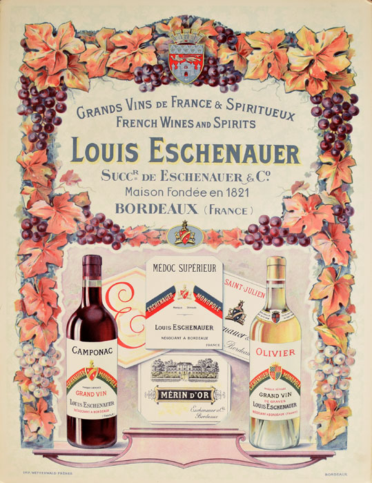 Louis Echenauer Wines Add to cart TITLE: Louis Echenauer Wines ARTIST: Anonymous YEAR: c. 1900 MEDIUM: Lithograph DIMENSIONS: 24 x 19 CONDITION: A Condition PRICE RANGE: $500 - $1000