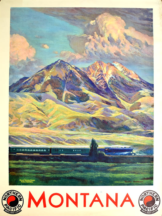 Montana Northern Pacific Out of stock TITLE: Montana Northern Pacific ARTIST: Gustav Krollman YEAR: c. 1930 MEDIUM: Lithograph DIMENSIONS: 40 x 30 CONDITION: A Condition On Linen PRICE RANGE: $2000- $3000